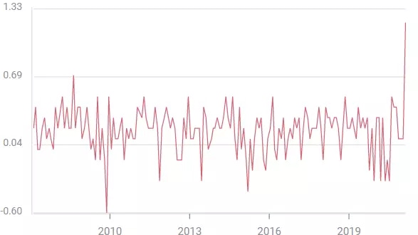 The Producer Price Index (PPI) jumped 1.3% in January, doubling the annual rate from 0.8% to 1.7%. The core rate rose 1.2% on the month from 0.1% in December driving the annual rate to 2% in January from 1.2%.