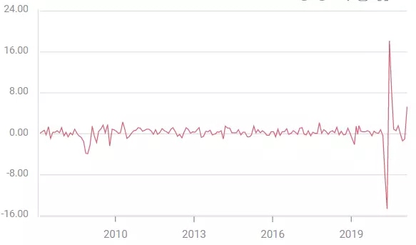 Washington's second individual stimulus payment of $600 in late December translated into a 5.3% burst in Retail Sales in January.