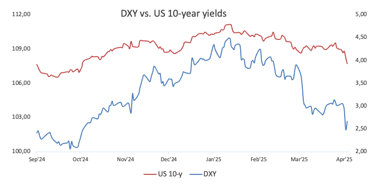 The steep decline in the index gathered renewed and firm pace after President Donald Trump unveiled his so-called “Liberation Day” on Wednesday, which has also reinforced the prospects of a transatlantic trade war and has lent extra legs to the idea of a US economic slowdown.