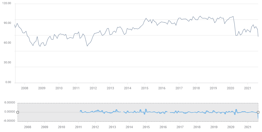 Instead the index collapsed to 70.2, beneath than the prior pandemic low of 71.2 in April 2020. It was the weakest for this confidence index since December 2011 and one of the largest single-month declines on record.