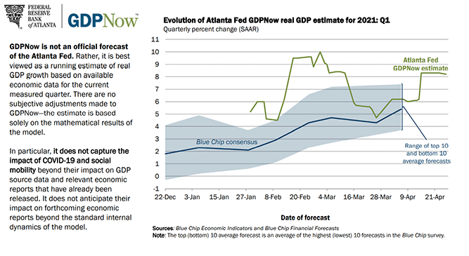 The estimate from the Atlanta Fed’s GDPNow program is 8.2%. For the year the Fed’s own Projection Materials posit a 6.5% expansion as well.