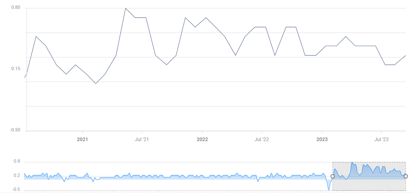 More importantly, the economic calendar points to a MoM increase of 0.3%, which would represent an annualized increase of roughly 4% – too hot. It would also be a repeat of last month's outcome.