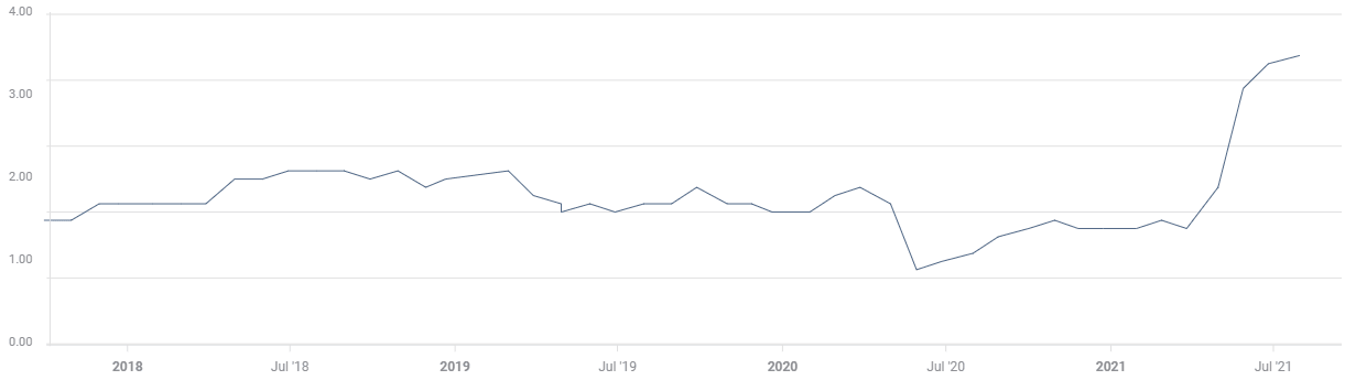 In the meantime, the latest PMI report published by IHS Markit revealed that input price pressures continued to increase in early August. “The rate of input price inflation accelerated to the second-fastest on record (since October 2009), with both manufacturing and service sectors registering a quicker rise in costs,” the publication read.
