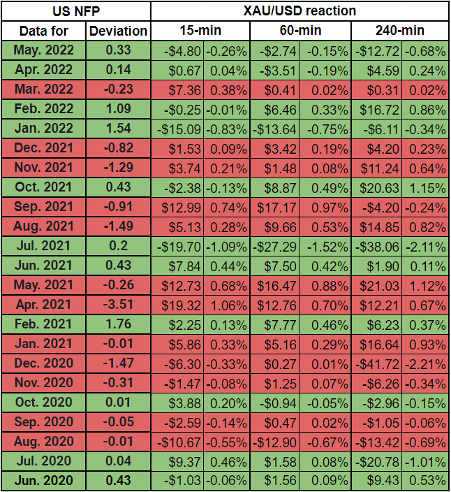 US June Nonfarm Payrolls Preview: Analyzing gold's reaction to NFP surprises