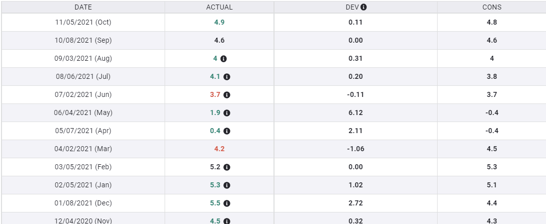 Unfortunately for American workers, inflation has risen even faster. Wages have not outstripped the Consumer Price Index (CPI) since March. Annual real wages (wages minus inflation) of US workers have declined steadily for seven months: April -3.8%, May -1.9%, June -1.7%, July -1.3%, August -1.3%, September -0.8% and October -1.3%.