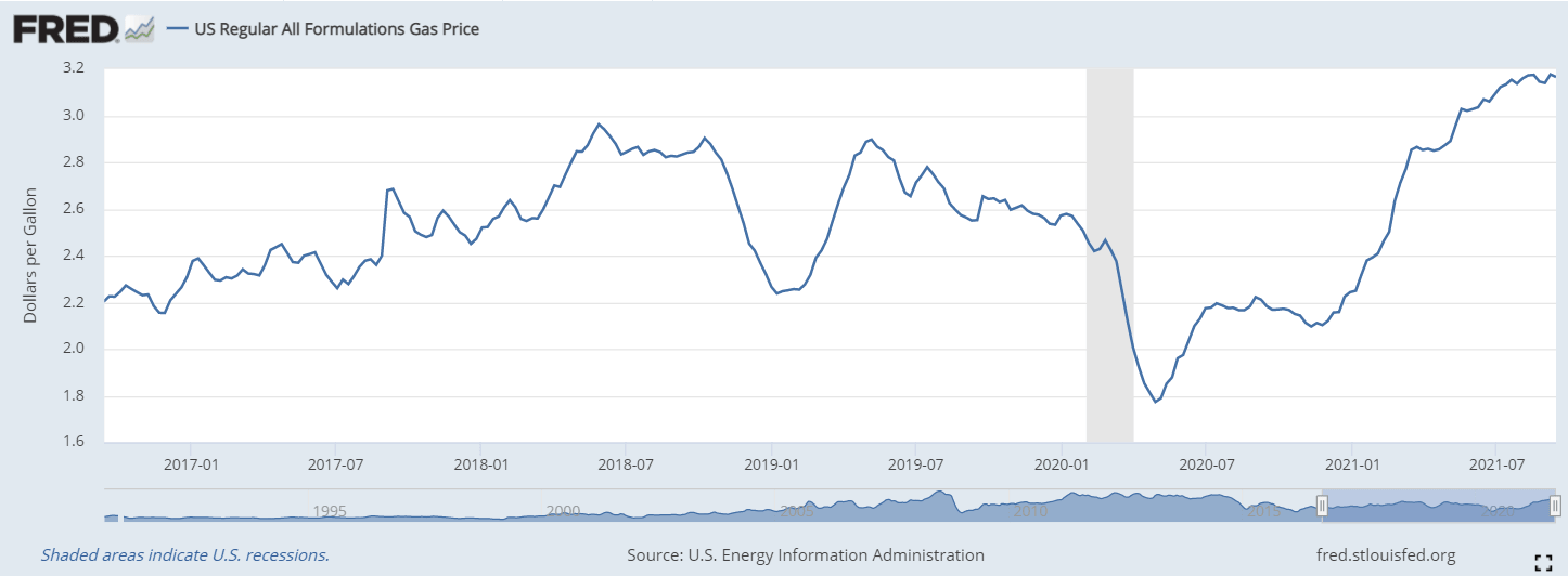 Headline inflation has averaged 3.9% this year. Since the first quarter it has measured 5.1%. The staples of food, housing costs and gasoline have seen some of the largest increases. A gallon of regular gasoline has increased 41% this year and 51% since the 2020 presidential election.
