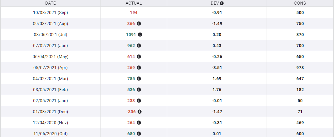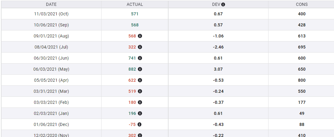 Although the ADP data has been a poor predictor for individual NFP results over the past six months, the steady positive trend is an indication that the overall job market has not seriously deteriorated.
