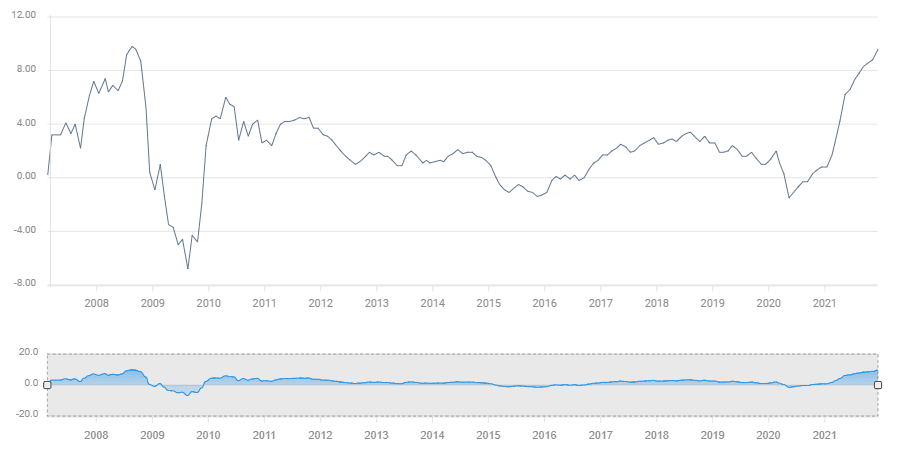 Manufacturing costs have climbed at record rates for three months in a row, ensuring that consumer prices in the first half of this year will continue higher. The annual Producer Price index (PPI) rose 8.6% in September, 8.8% in October and an astonishing 9.6% in November.