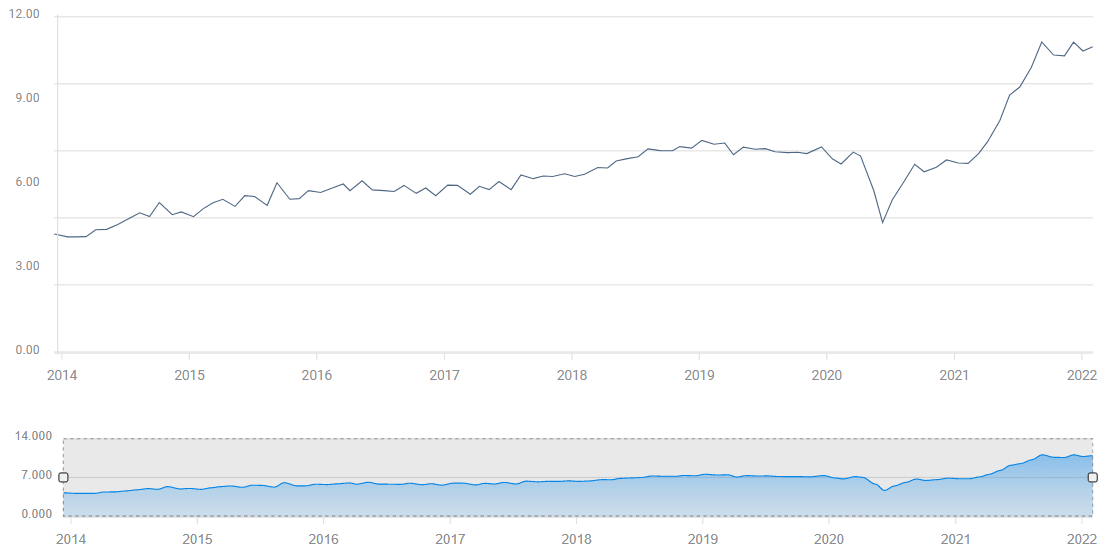 The Job Openings and Labor Turnover Survey (JOLTS) recorded 10.925 million unfilled positions in December. From June 2020 through year end JOLTS has averaged 10.758 million openings per month. Any one of those months is a record, seven in a row with many more to come, is a new and largely unexplained phenomenon for the US economy. Before the pandemic lockdown in March 2020, the highest single month had been 7.574 million in November 2018.