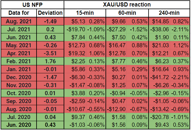 US September Nonfarm Payrolls Preview: Analyzing gold's reaction to NFP surprises