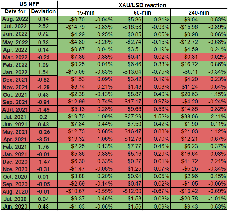 US September Nonfarm Payrolls Preview: Analyzing gold's reaction to NFP surprises