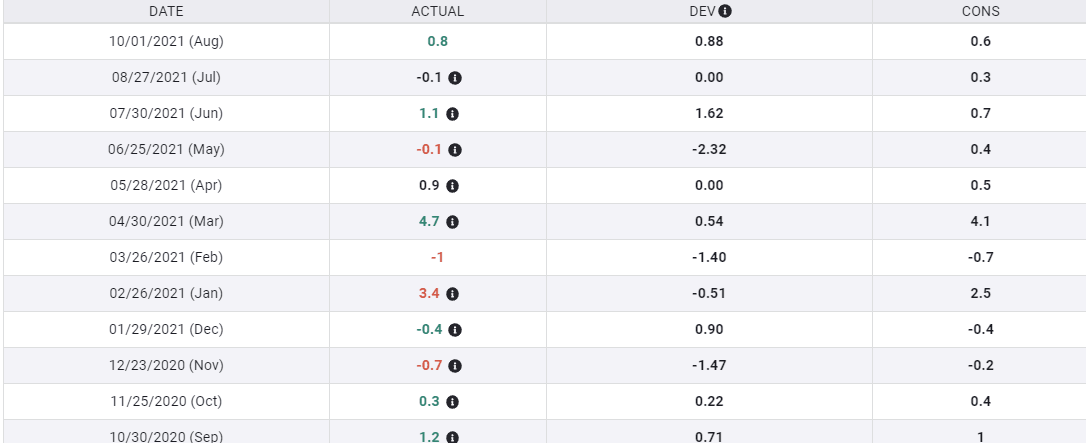 Personal Spending averaged a healthy 0.63% increase in the second quarter. This dropped to 0.35% in the two months of the third quarter which have been reported. September's spending numbers will be issued by the Department of Commerce this Friday, with the consensus estimate for 0.50%.
