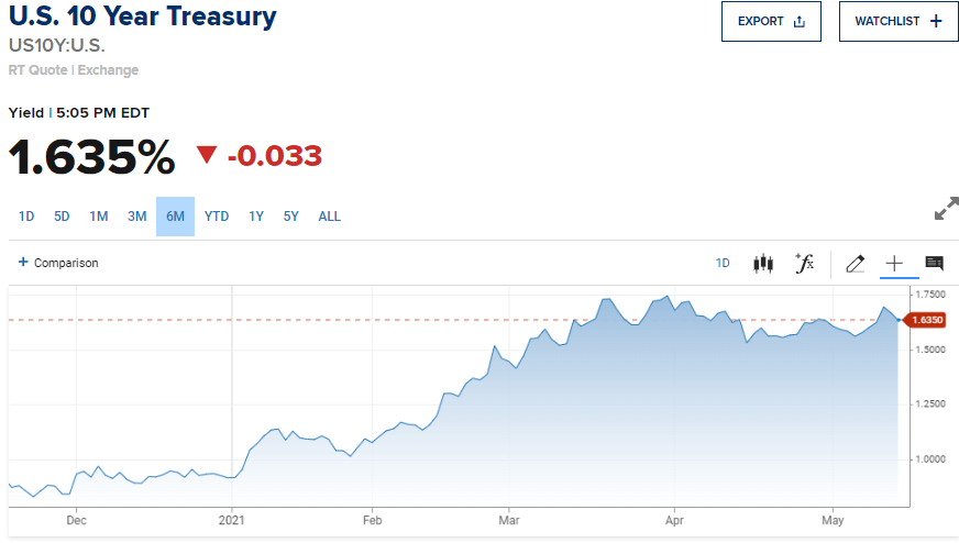 Treasury rates gave back some of their gains by Friday, closing at 1.635%.