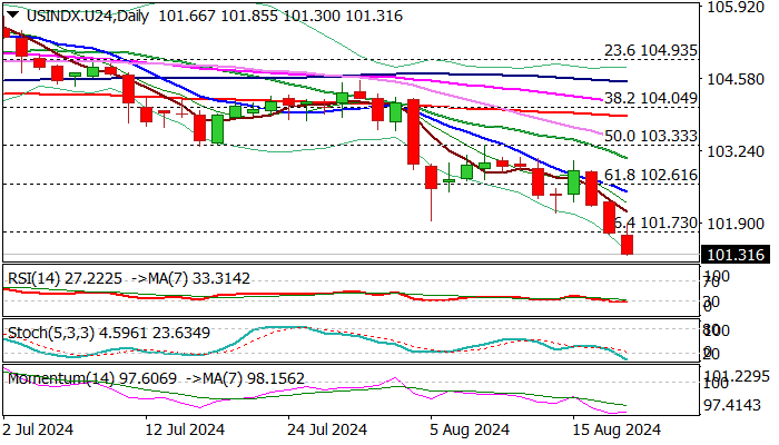 The dollar index fell to new multi-month low on Tuesday, moving in a steep bear-leg which extends into third consecutive day.