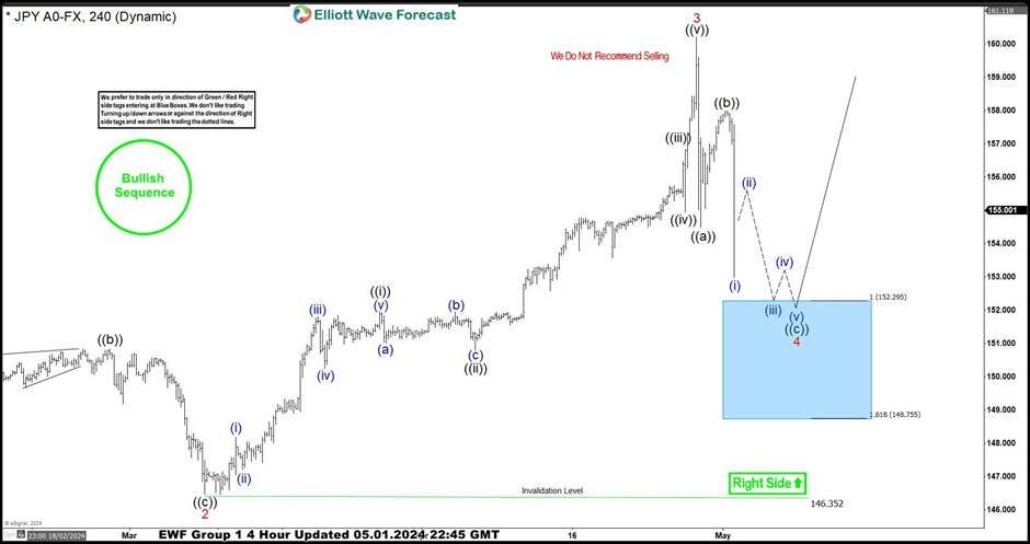 USD/JPY Elliott Wave four hour chart 05.20.2024