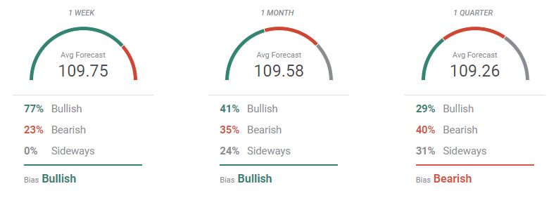 The FXStreet Forecast Poll indicates that the market is seeing the USD/JPY extending its advance within range. Bulls took over the weekly perspective, currently at 77%, leading also in the monthly view, although decreasing to 41.%. Bears take the lead in the quarterly view, with 40%. In the three cases, however, the pair is seen above 109.00 on average.