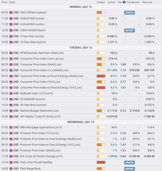 Treasury rates which had jumped on Tuesday with the US Consumer Price Index June release of 5.4%, settled back on Wednesday with the yield curve slightly flattening as the week ended.