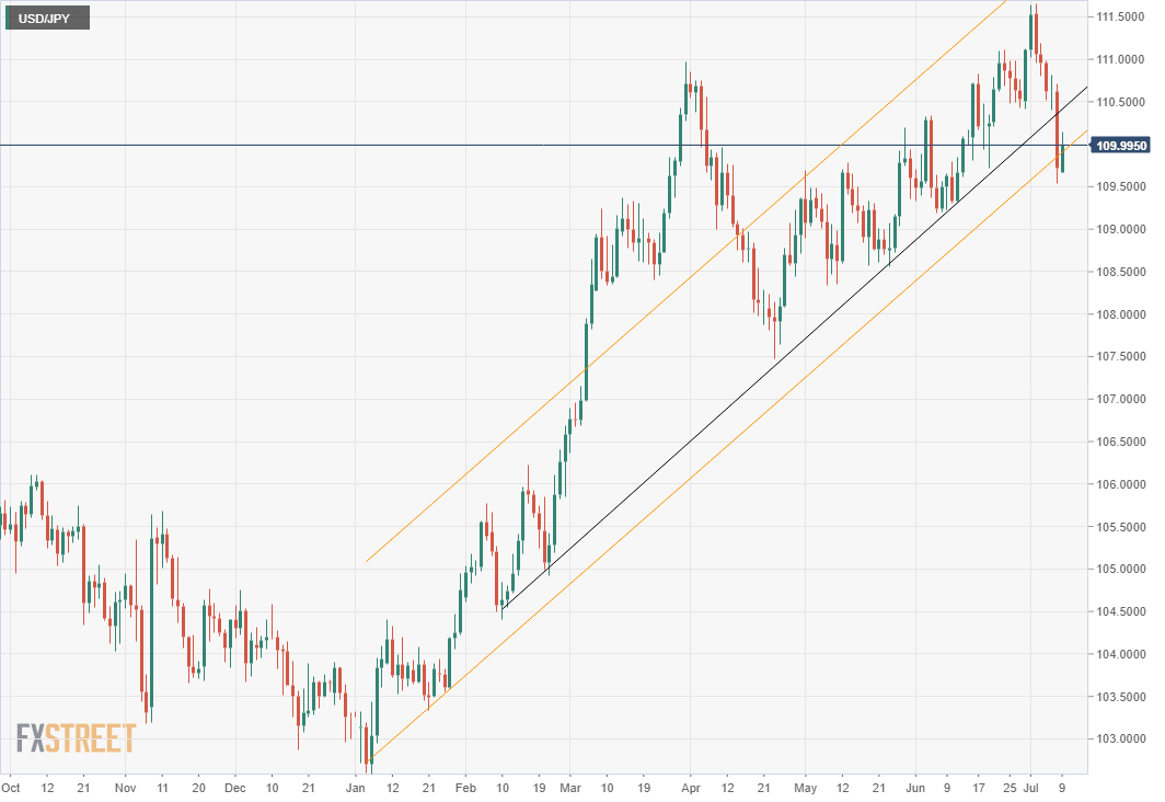 - USD/JPY loses 111.00 on Monday and 110.00 on Thursday.