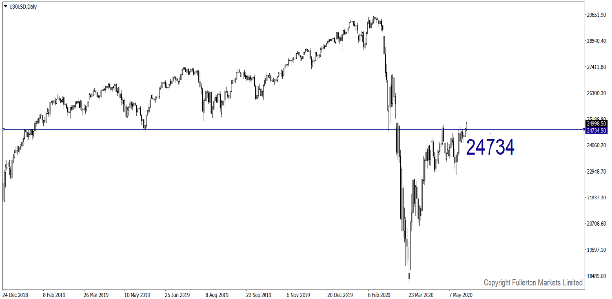Futures on the Dow Jones Industrial Average jumped over 500 points, pointing to an implied opening jump of around 526 points. S&P 500 and Nasdaq 100 futures also pointed to a positive open for the indexes on Tuesday. Trading volumes remained thin in overnight action. The US markets were closed Monday in observance of Memorial Day.