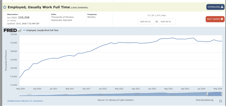 The labor market isn’t telling us the economy is strong. It’s signaling recession with full-time employment dropping.