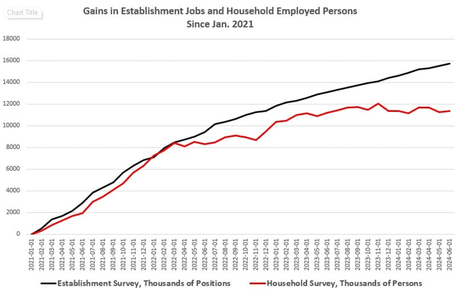 According to the official establishment survey data (We’ll accept it as valid for the sake of argument), the economy added 2.6 million jobs between June 2023 and June 2024.