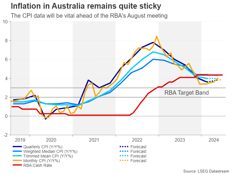 Inflation in Australia has bucked the global trend and has been edging higher all year, reaching 4.0% y/y in May in the monthly measure. The Reserve Bank of Australia has been hesitant about raising interest rates again, but the more reliable and complete quarterly numbers may just convince policymakers that further tightening is needed. And with the next meeting coming up on August 6, the timing couldn’t be better.