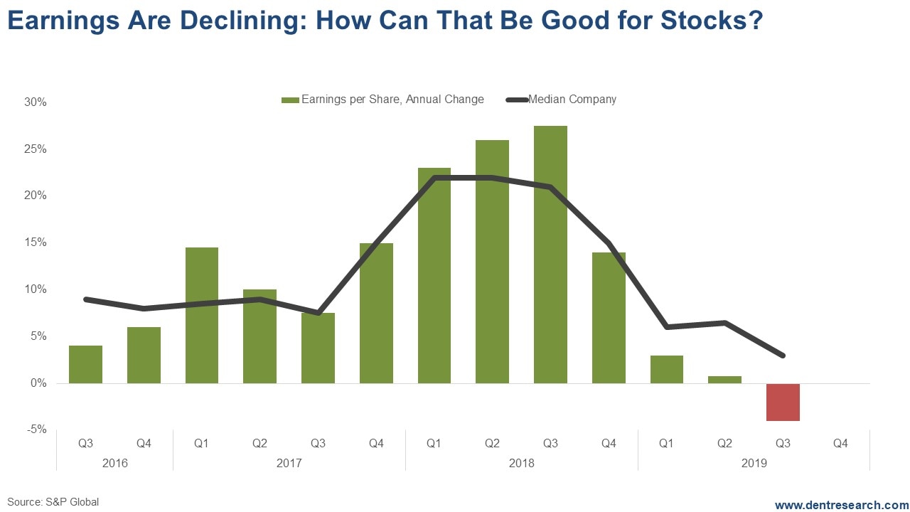I talked last Monday about how there were some key indicators like industrial production growth and construction spending that were not confirming such a resurgence… at least not yet. And such falling trends tend to be a leading indicator of falling profits.