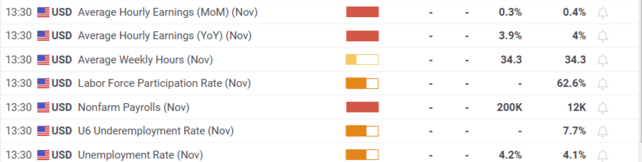For November, economists expect the US economy to have created 200,000 new positions, much better than the 12,000 jobs created in October. However, the Unemployment Rate is foreseen at 4.2%, ticking up from the previous 4.1%.