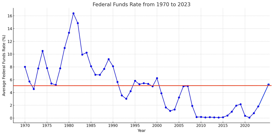 And if you factor out the nearly 15 years of artificially low rates in the wake of the 2008 financial crisis, you discover that rates today are a little below normal. The average federal funds rate from 1970 to 2007 was 6.74 percent.