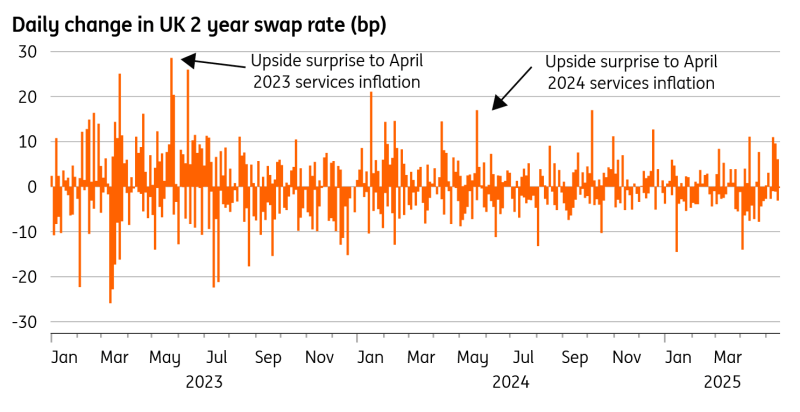 April’s numbers have proven to be highly unpredictable. Two years ago, the release of that month’s data triggered the biggest one-day repricing of Bank of England expectations of the whole of 2023. Last year’s April numbers triggered the joint-second largest move.