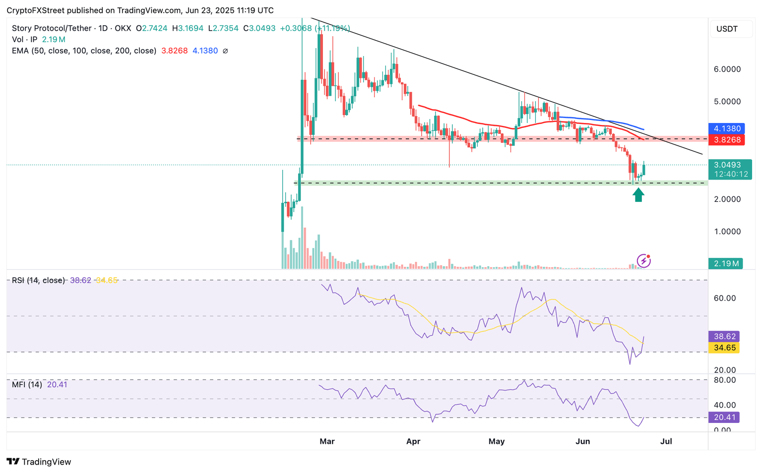 Story’s price has reclaimed support at $3.00 after extending its decline in June by nearly 42% to $2.46. The reversal, exceeding 10% on Monday, marks day three of a steady bullish streak, underpinned by the fresh inflow of money into IP.