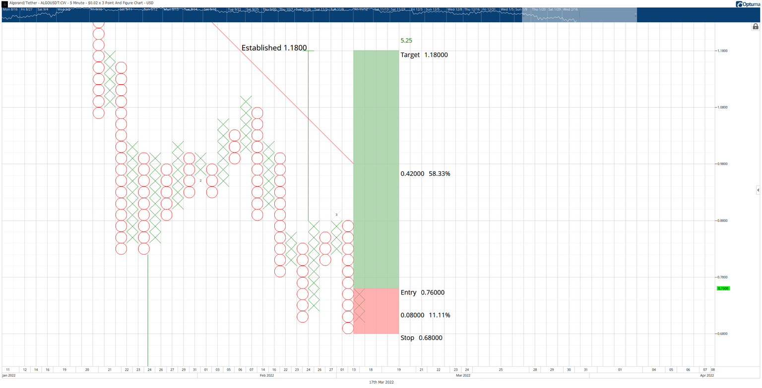 ALGO/USDT $0.02/3-box Reversal Point and Figure Chart