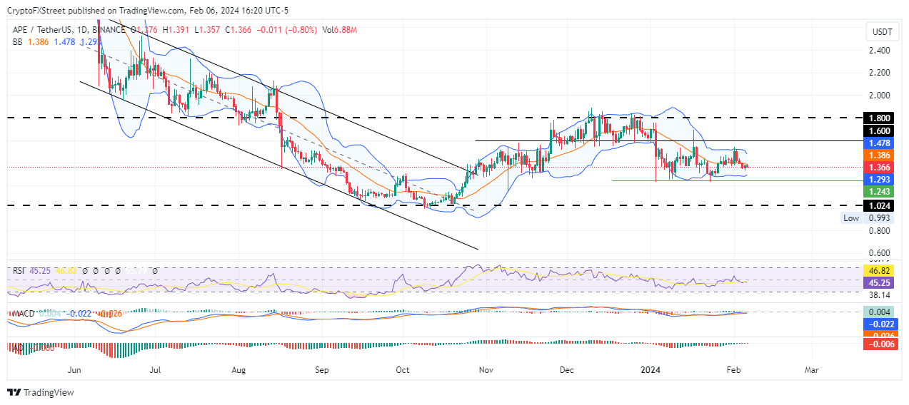 - APE could fall 8% to the $1.24 support level, last tested on January 23.