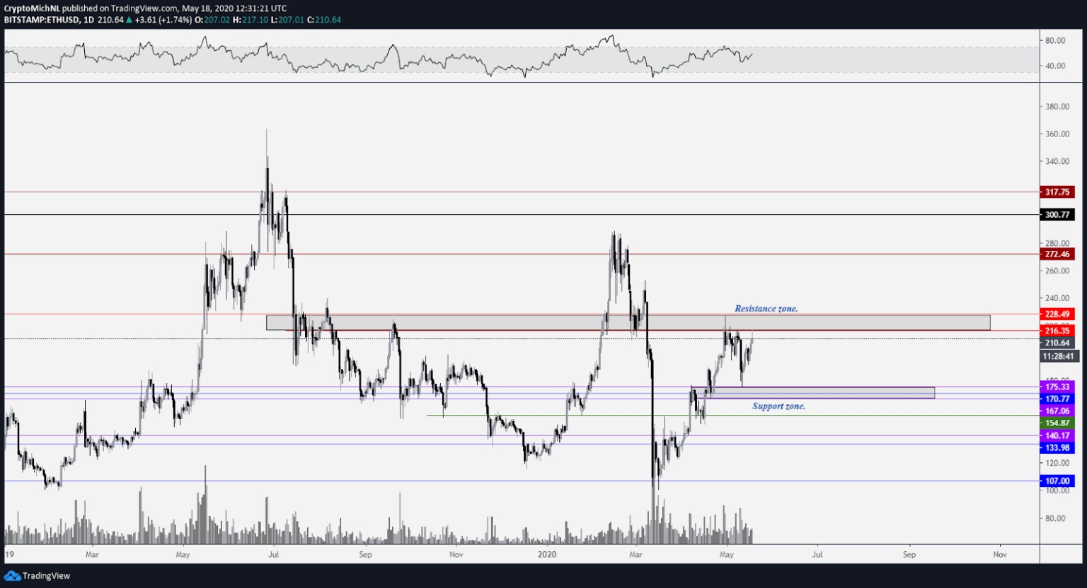 Ethereum facing heavy resistance between $215-230 as next hurdle