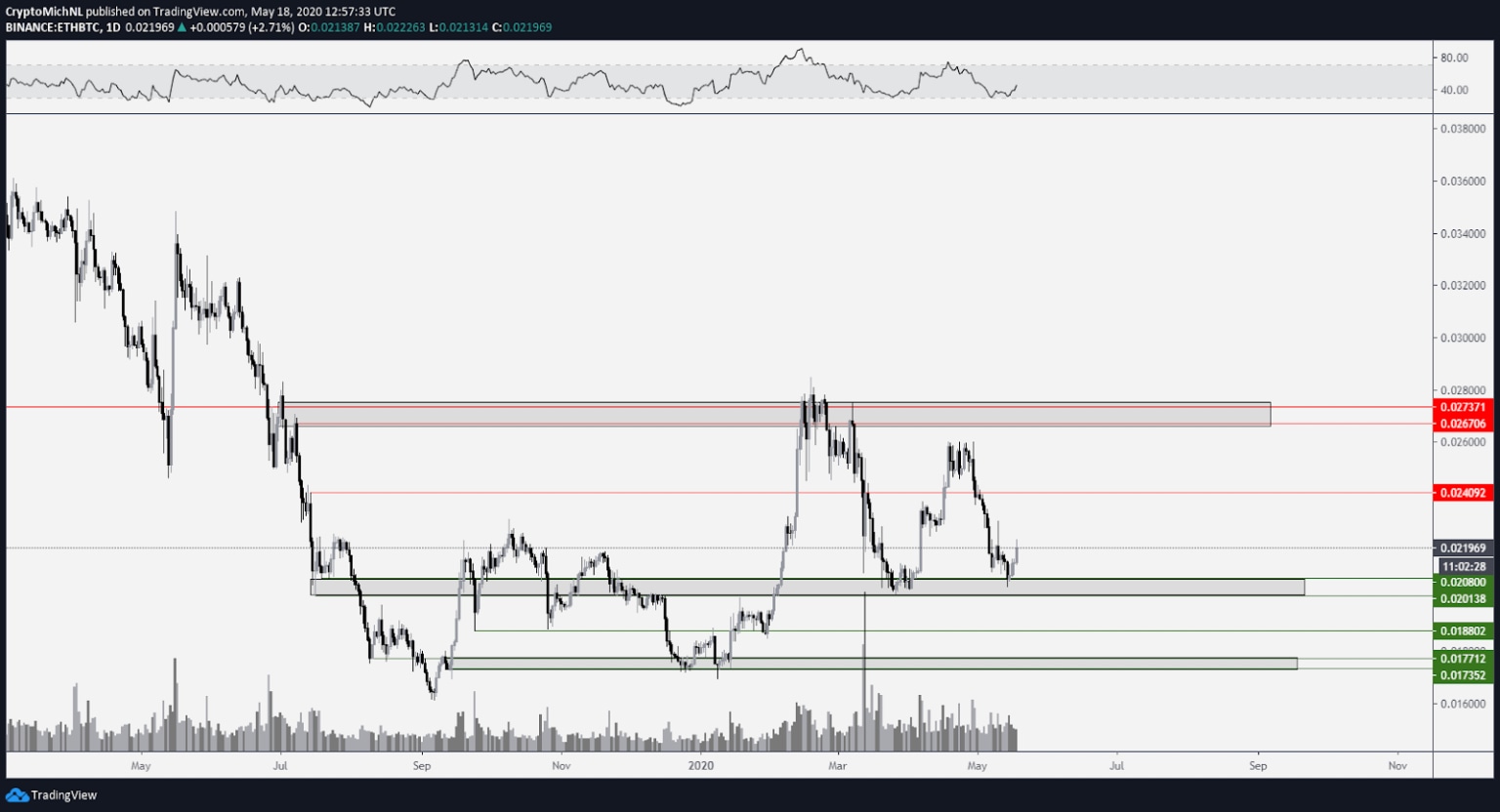 Ethereum is posting higher lows against its Bitcoin pair in recent weeks and this is a bullish sign for a possible breakout for ETH price.
