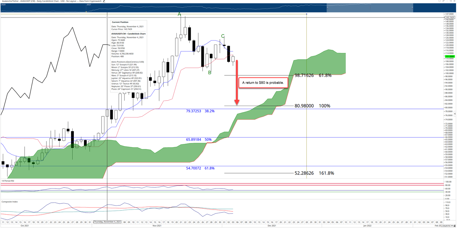 AVAX price has dropped as much as 31% from the all-time high it established on November 21st. Since then, it has recovered over 25% of that loss until it faced renewed selling pressure against some key Ichimoku levels.