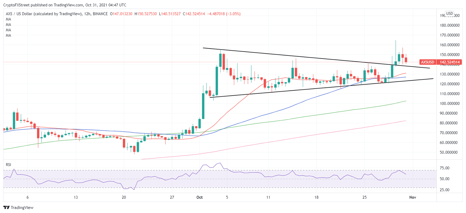 AXS bulls are losing conviction after reaching the all-time highs of $164.85 on Friday, as they contemplate the next move amid a better mood across the crypto space.