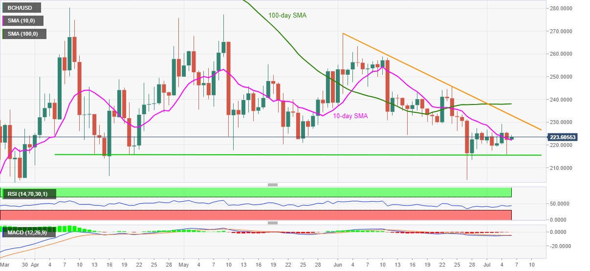 BCH/USD Price Analysis: Bounces off 10-day SMA to regain 223.00