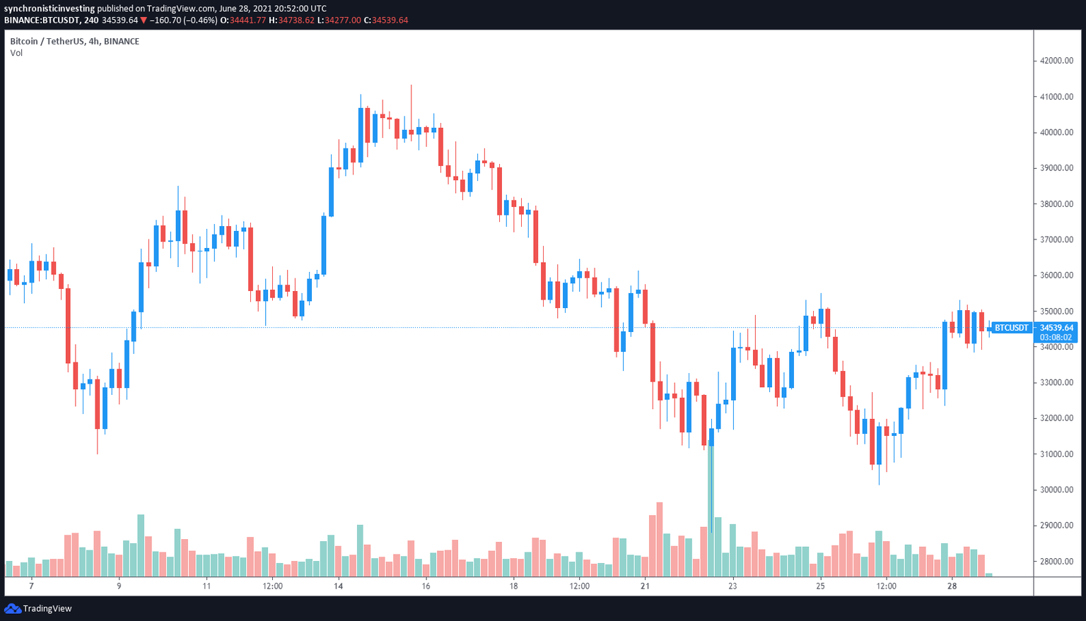 Data from Cointelegraph Markets Pro and TradingView since rallying to $35,400 on June 28, Bitcoin has traded in a range between $33,850 and $35,000 as the fallout from China’s crackdown on BTC mining continues to reverberate across the market.