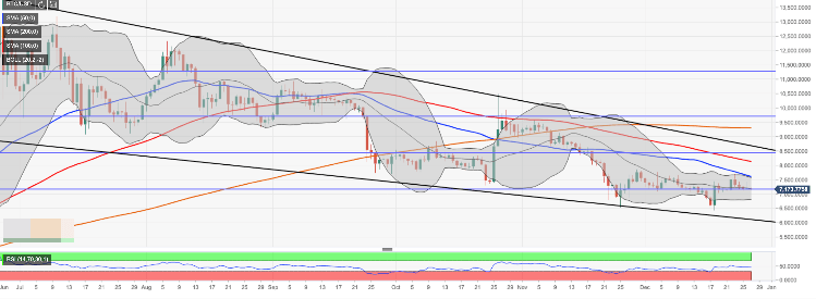 Meanwhile, Bitcoin is changing hands at $7,180, mostly unchanged both on a day-to-day basis and since the beginning of Friday. The first digital coin navigated safely through the Christmas time. While Bitcoin has retreated from the recent high of $13,990, it is still twice as high as in January.