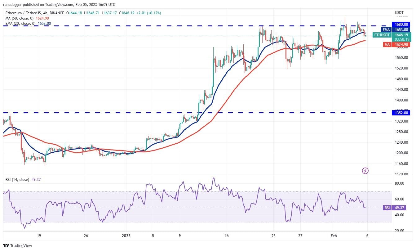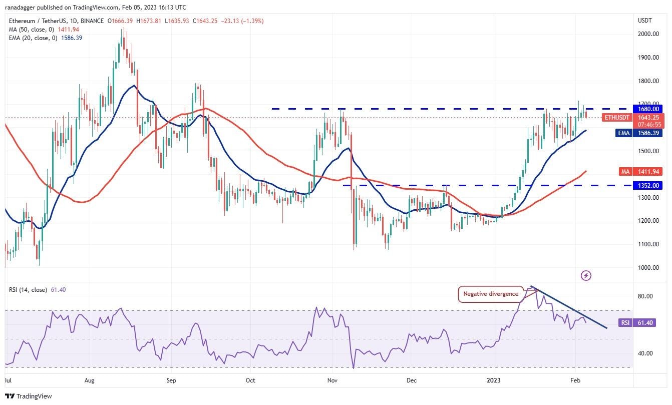 Instead, if the price turns down and plummets below the 20-day EMA, the ETH/USDT pair could tumble to $1,500. This is an important support level to monitor because a bounce here could keep the pair range-bound between $1,500 and $1,680. On the other hand, if the $1,500 support cracks, the pair may dive to $1,352.