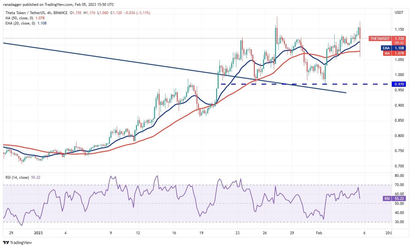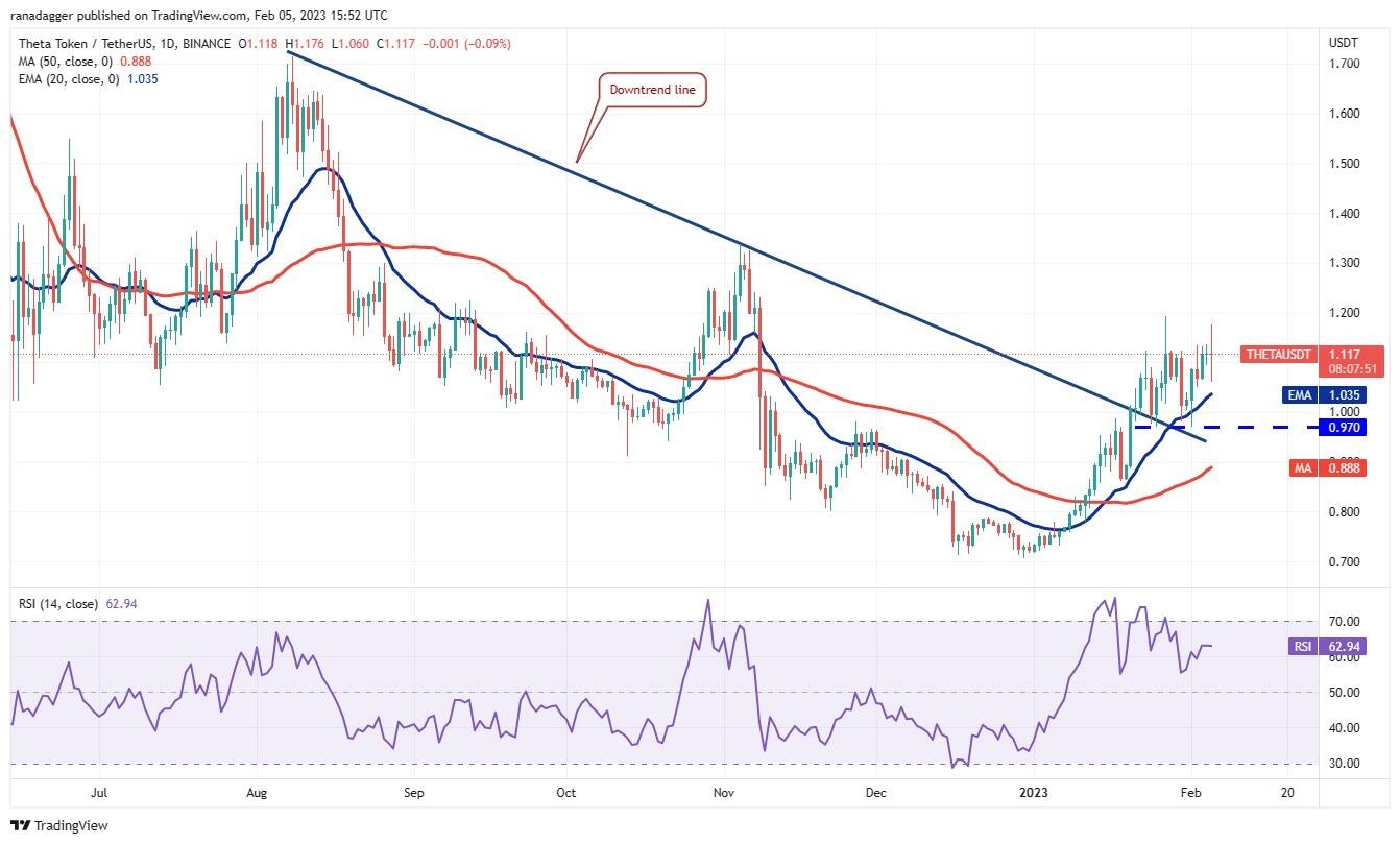 The bulls will try to push the price to the overhead resistance at $1.20. This level may act as a minor hurdle but if bulls do not give up much ground from $1.20, the THETA/USDT pair could extend its up-move to $1.34. This is an important level for the bears to defend because if this resistance crumbles, the pair could soar to $1.65.