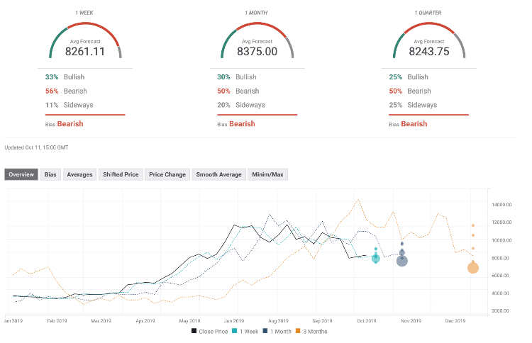 The Forecast Poll of experts worsened significantly since the previous week. Expectations on all timeframes are mostly bearish. The average price forecasts stays well below 9,000.