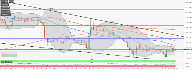 On the upside, a recovery above $7,535-$7,550 will bring this week's high of $7,689 back into focus. The next resistance area comes at $7,800 with SMA50 daily and the upper line of the daily Bollinger Band located on approach. Once it is cleared, the upside is likely to gain traction with the next focus on psychological $8,000 and $8,220 (SMA100 daily).