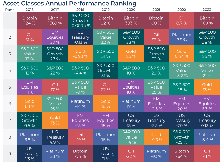 As Jerome Powell suggested cheaper money is finally coming, Bitcoin stands among the winning investments in 2023, continuing its streak as the most “binary” asset since 2016 – either performing the best or worst in each calendar year. This is the contrast of what happened in 2022.