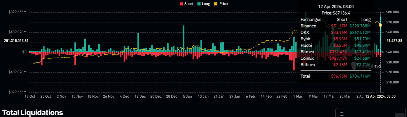 Bitcoin price reverted back to levels as low as $65,086 during the opening hours of the New York session, in a move that caught many traders by surprise. Data according to information center Coinglass indicates over $881 million in total liquidations, composed$784 million in long positions against $96 million in short positions.