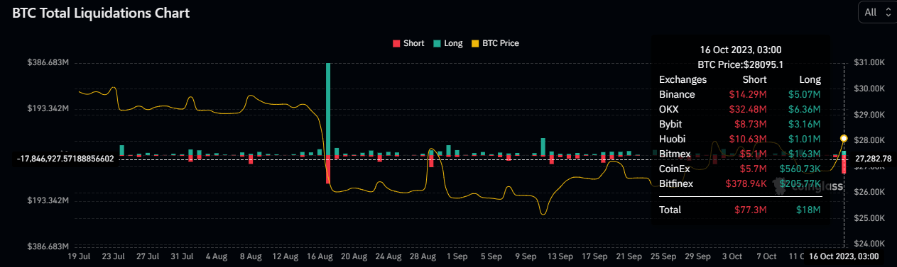 Despite confirmation, the damage was already done for perpetual traders that had opened short positions. Data from Coinglass shows that almost $80 million in short positions were liquidated, alongside around $18 million longs.