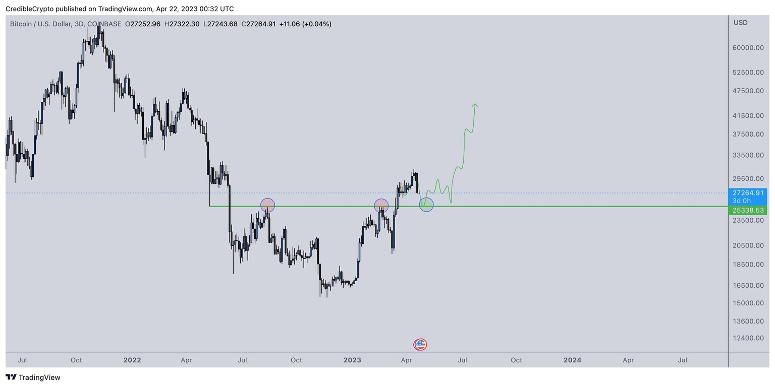 “The last major retest we had was at 19k before our rally to 30k+. A retest of 25k here would be logical and healthy,” he stated
