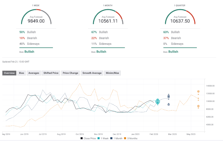 The further price momentum is heavily dependant on Bitcoin's ability to pass through an important resistance area of $9,800-$10,150. It is backed with strong technical indicators, including 50% Fibo retracement of the above-said move and a combination of SMA50 and SMA100 on 4-hour chart. Apart from that, it contains psychological $10,000 and a sloping trendline from February 13 high that has been limiting the recovery during the previous week.