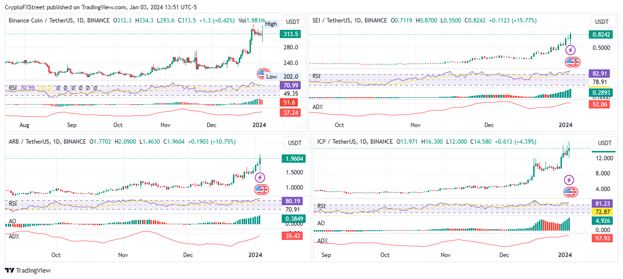 For BNB, ICP, ARB, and SEI prices, the upside potential remains plausible considering the Relative Strength Index (RSI) remains north bound, suggesting momentum continues to rise. The Average Directional Index (ADX) indicator, which quantifies strength also points to a continuation the uptrend.
